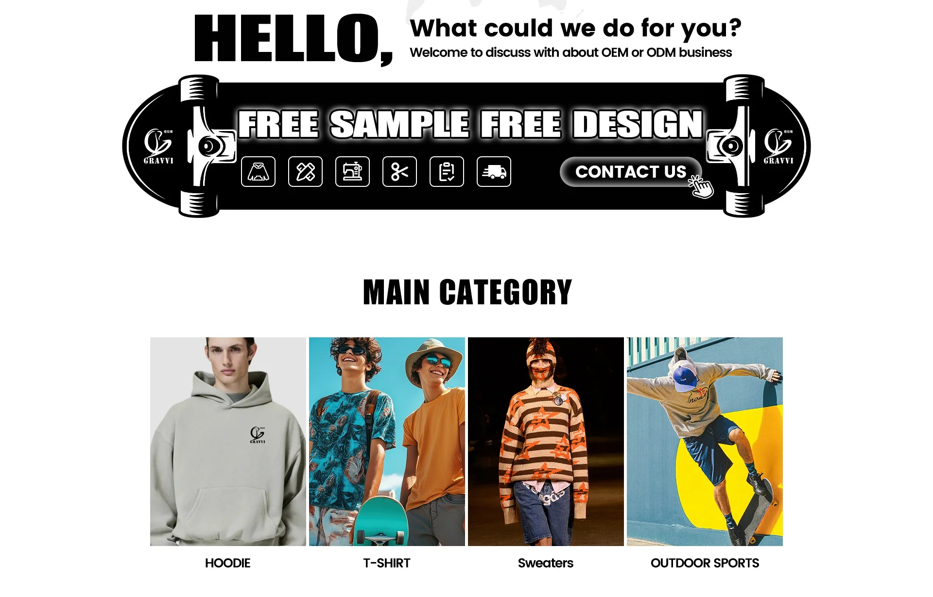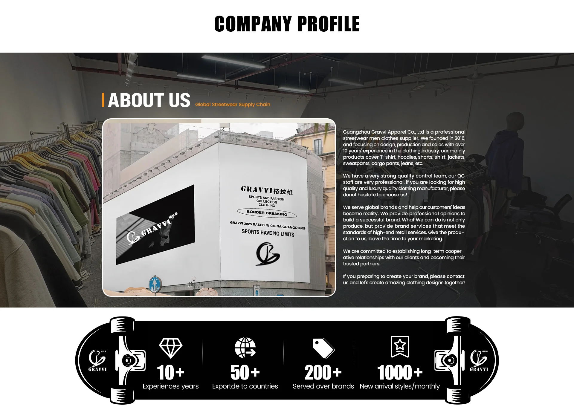 Productos principales:Camisetas, sudaderas con capucha, ropa de calle, pantalones de chándal, chaquetas