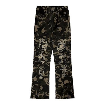 กางเกงยีนส์ขาตรงแบบลำลองสำหรับผู้ชายกางเกงยีนส์ลายพรางแฟชั่นปรับแต่งได้